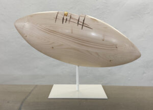 Claus Peter Berneth betitelt seine neuesten Arbeiten mit „Einschnitte“. Die Objekte und Skulpturen aus Holz setzen das von ihm schon länger bearbeitete Thema „Strukturen“ fort. „Einschnitte“ sind oft verletzend, hart und scharf. „Einschnitte“ prägen aber auch, ergeben oft auch definierte Strukturen, und können, zusammen mit weiteren Oberflächenstrukturen charakteristische Merkmale in markanter Schönheit vereinen. Lebenseinschnitte können weh tun, sind verletzend, aber prägen den Charakter und die Persönlichkeit. Claus Peter Berneth verwendet bewusst die Kreissäge, um klare Einschnitte zu realisieren. Faserbrüche im Holz lassen raue und markante Oberflächenstrukturen entstehen, die zum Teil im harten Kontrast zu glatten, geschliffenen und polierten, Oberflächen stehen. Durch Einfärbung der Werkstücke lässt sich die Dynamik der Strukturen steigern, aber auch individualisieren. Ganz besonders wirksame Effekte wurden durch partielle Vergoldung mit Blattgold erzielt. Bei der Skulptur „Ursprung“ symbolisiert die Vergoldung der Einschnitte bei einem sonst bewusst glanzpollierten samenähnlichen Fichtenholzkorpus den Aufbruch, wenn nicht gar den Ausbruch des „Ursamens“ als Ursprung für neues Leben.